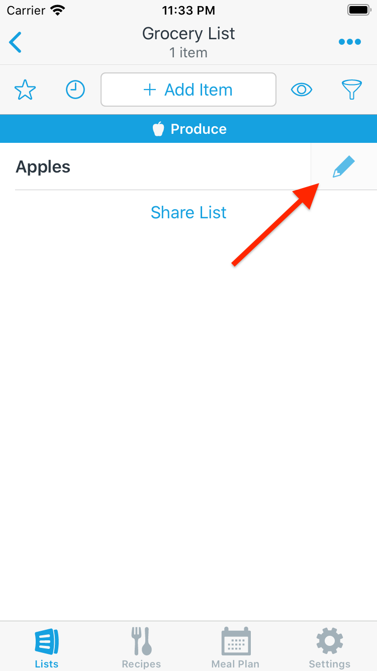 Tap the pencil icon for the item you want to edit to bring up the Item Details screen.