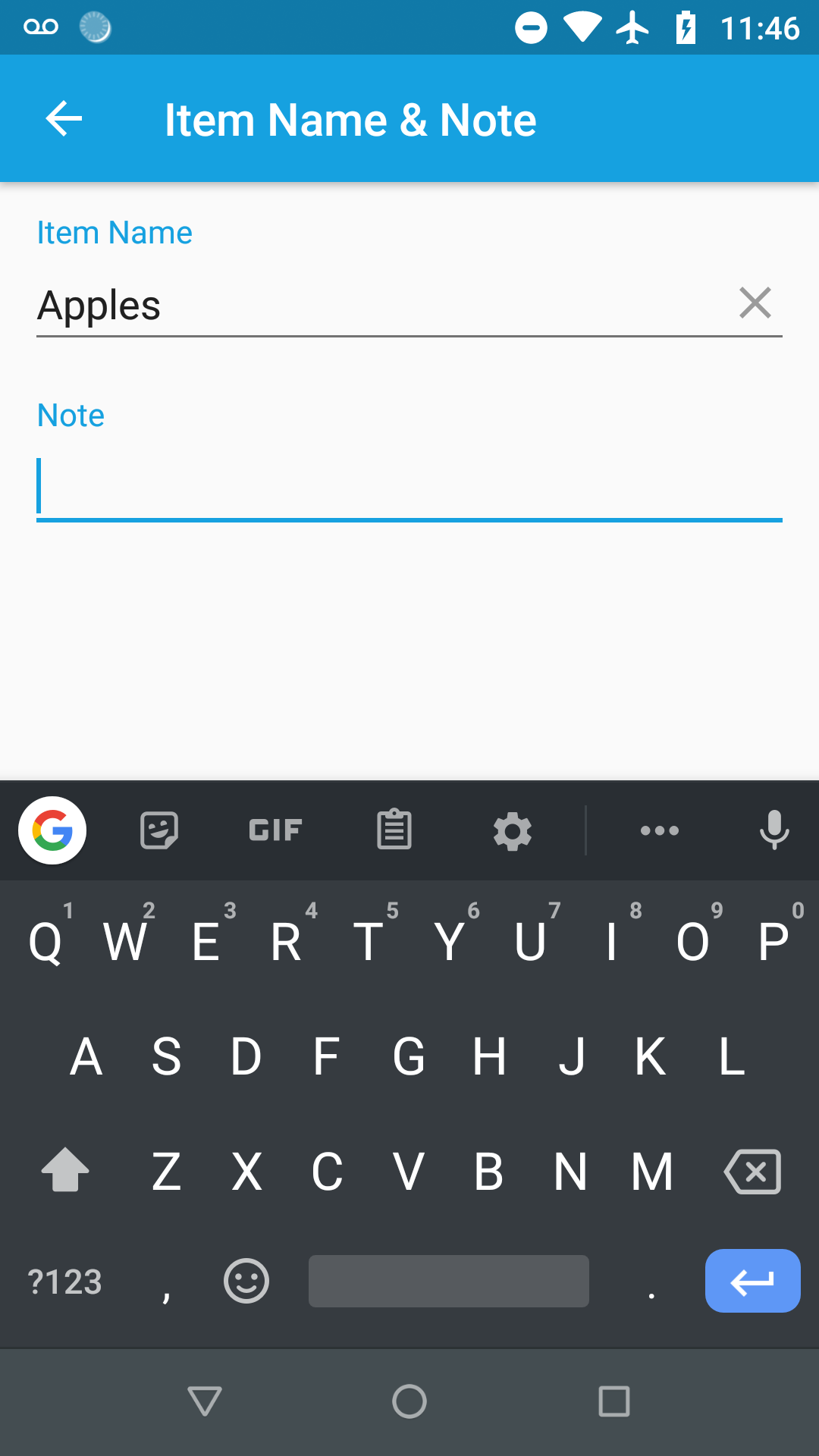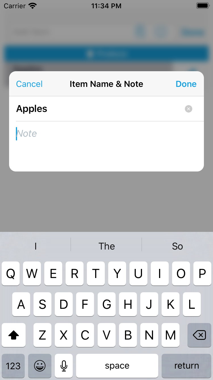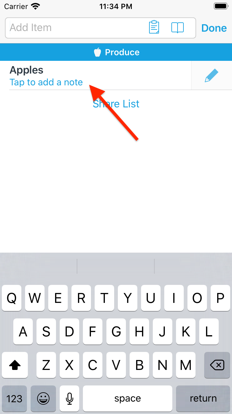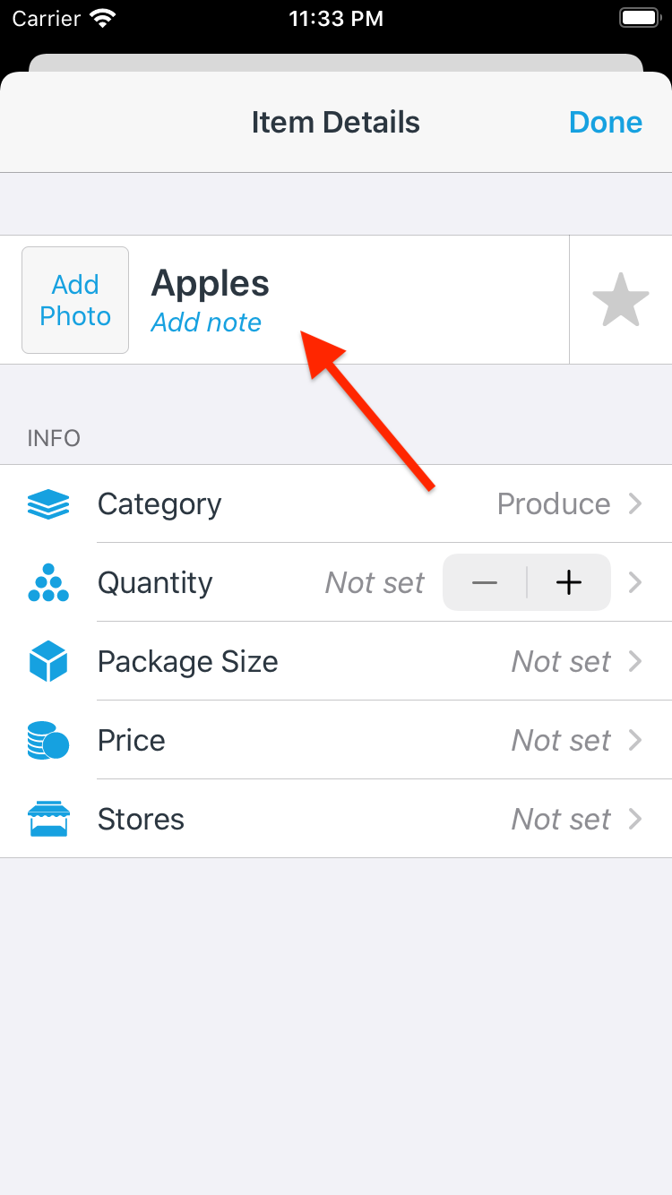 Enter a note and then hit Done to return to the Add Item field.