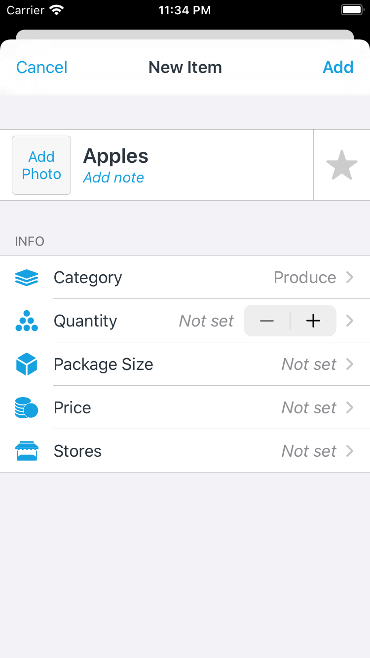 Edit the item’s details and then tap Add to add the item to your list.