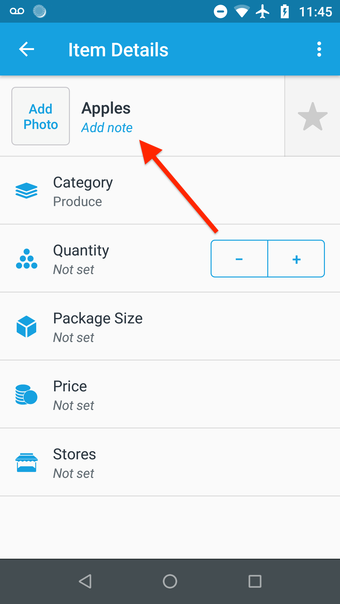 Or you can edit all of a new item’s details, including the note, before adding it your list.