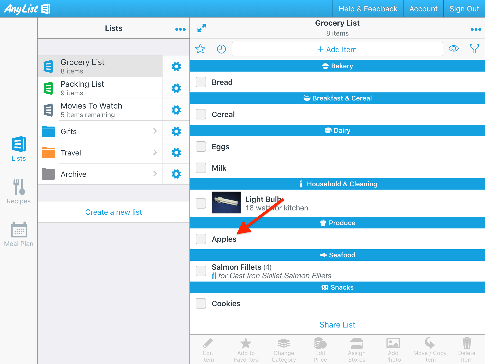 You can also quickly add a note to new items you are adding to your list.