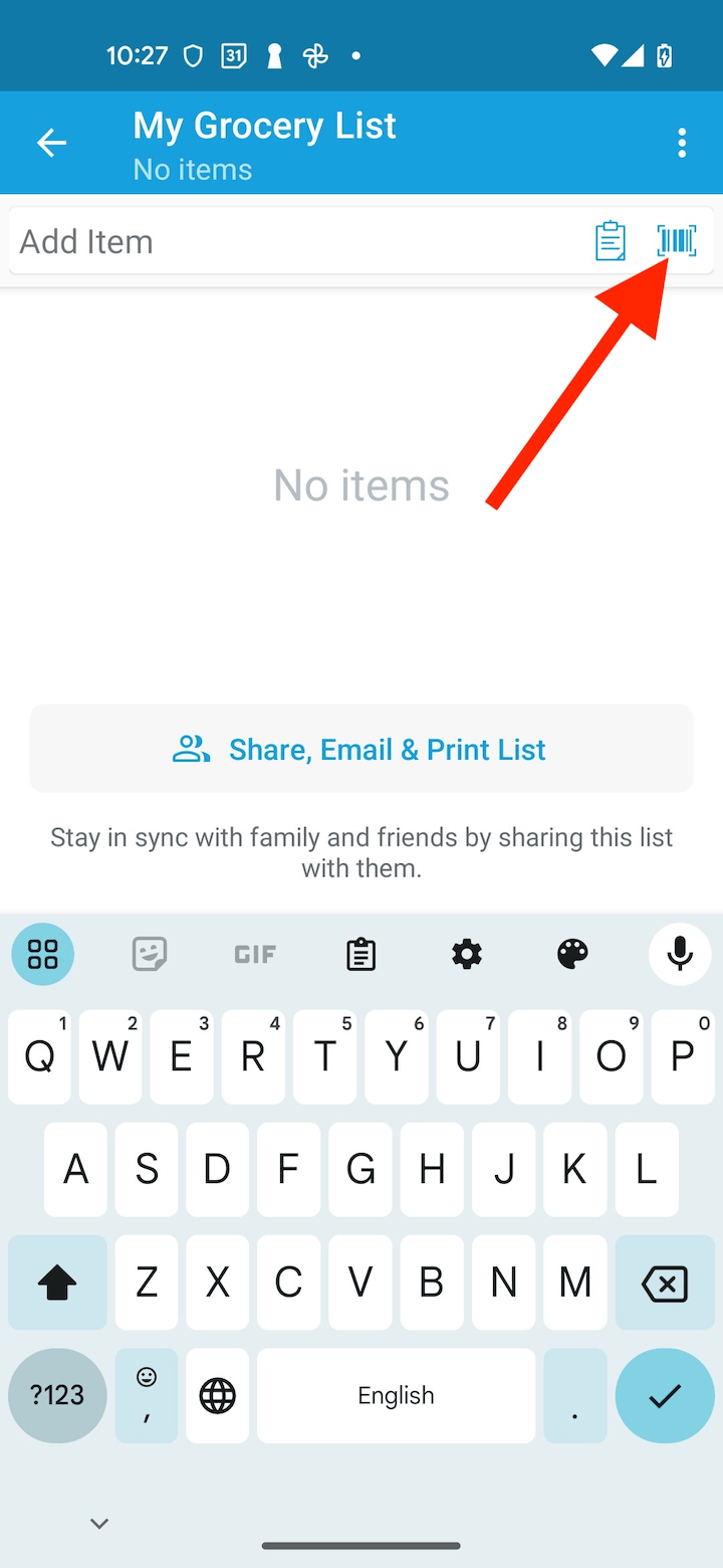 You can easily add items to your shopping list by scanning the barcode on product packages.