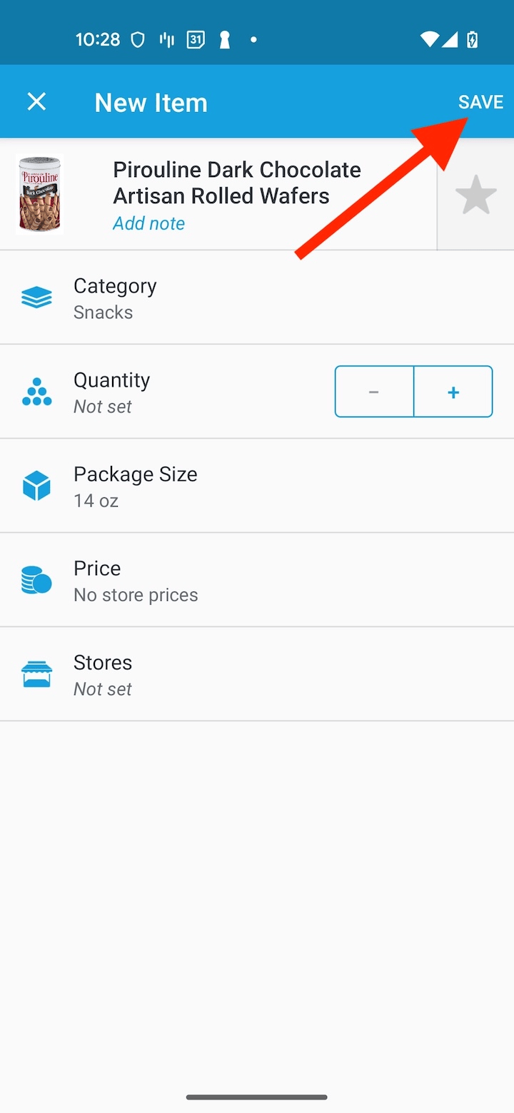 Update any information you choose on the New Item screen and tap the Save button when you’re done.