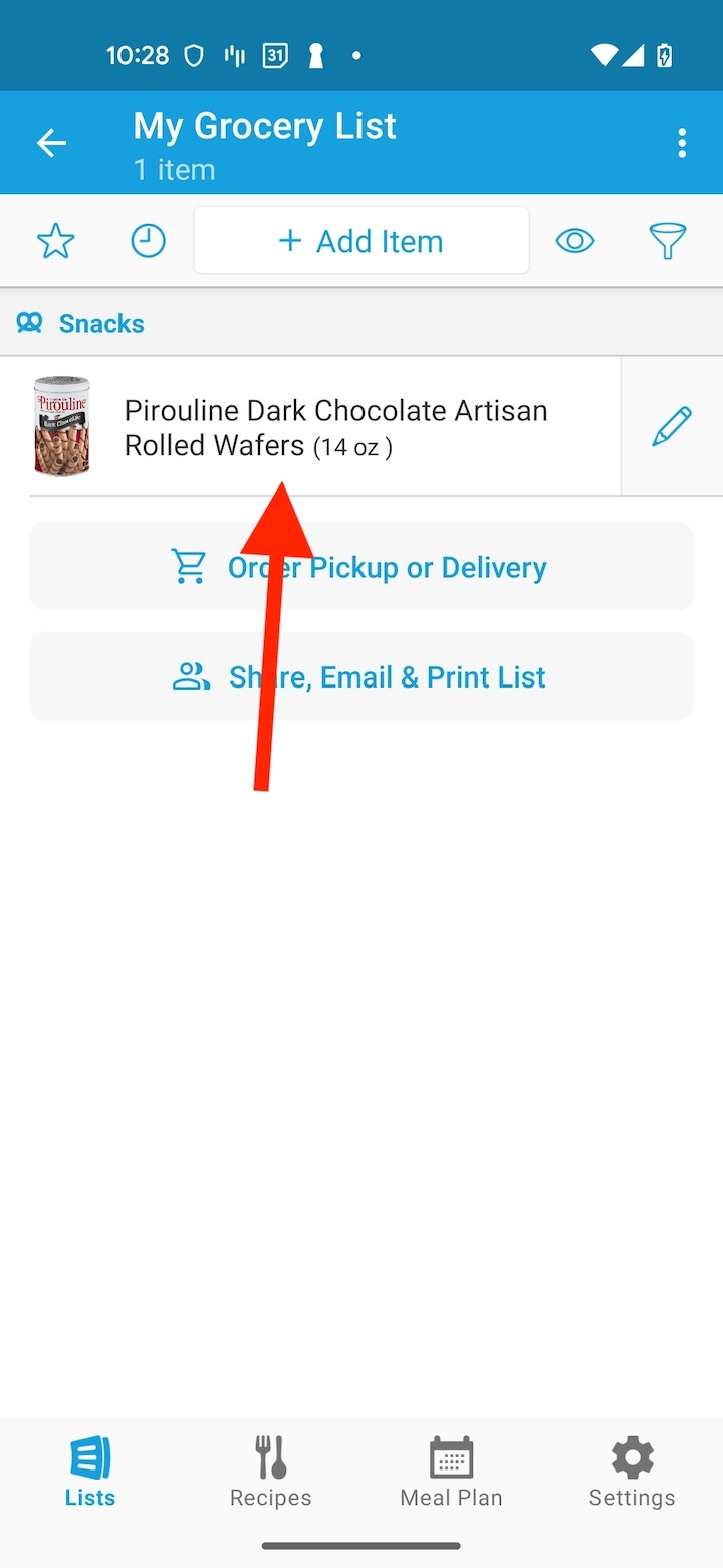 - When you are done scanning items, tap the Done button to return to your shopping list where the newly added items will appear.