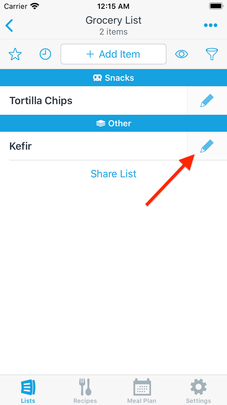 Tap on the pencil icon for the item you want to edit to bring up the Item Details screen.