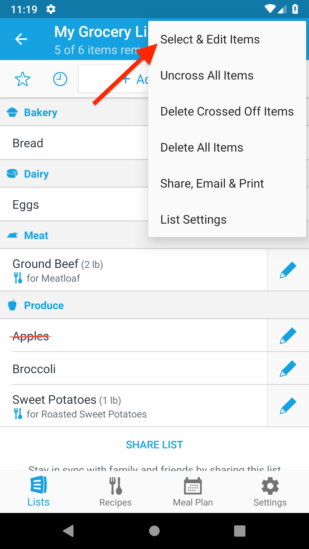 You can also add multiple items from your list to your favorites at once. First tap on the More Actions (…) button. Then tap on Select & Edit Items.